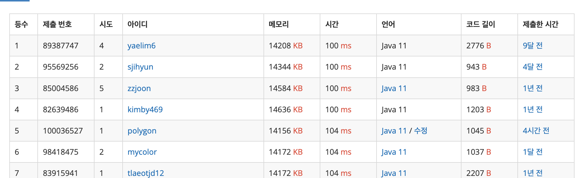 - 제출결과: Accepted / 104ms / 14156KB