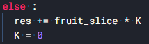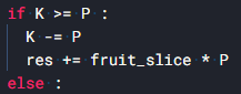 남은 K가 부족해 한 개의 과일을 전부 구매하지 못한다면, K개의 조각(fruit_slice)만 구매해주자.
