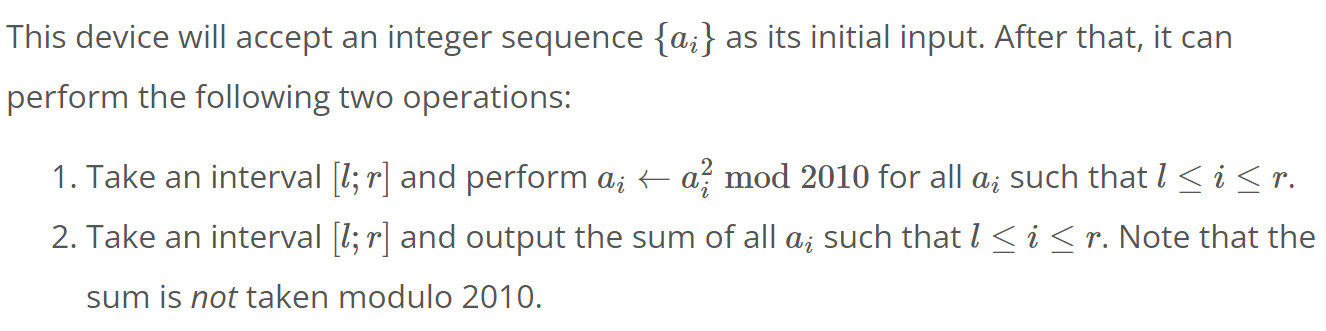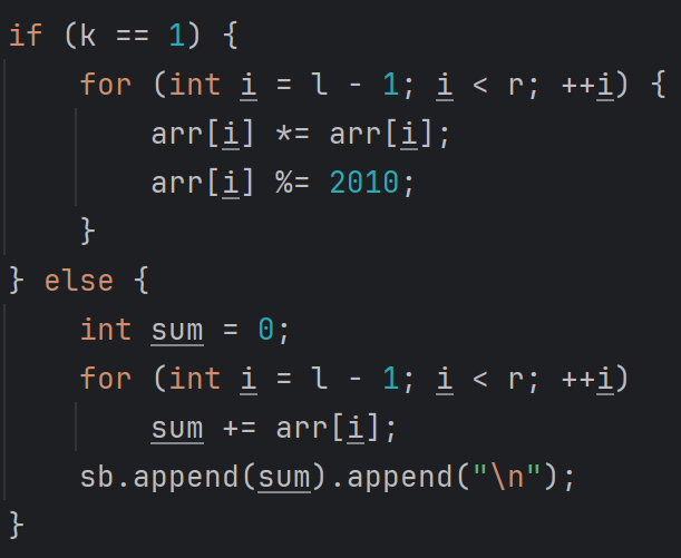- k == 1, arr[l] ~ arr[r]의 모든 요소에 대해 arr[i]^2 mod 2010 대입
