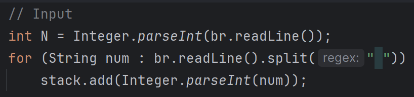 다음 줄에는 승환이 앞에 서있는 모든 학생들의 번호표(1,2,...,N) 순서가 앞에서부터 뒤 순서로 주어진다.