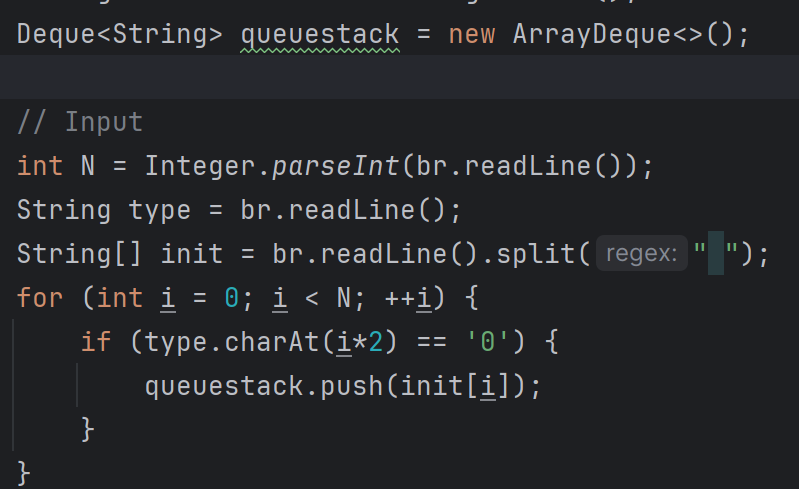 문제에서 주어진 'queuestack' 이란, i번째 구조가 주어지는 수열 A의 값에 따라 Queue 또는 Stack가 되는 자료구조다.