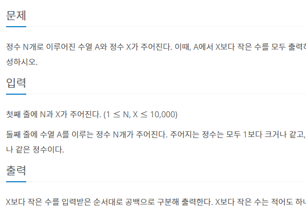 10871번: X보다 작은 수