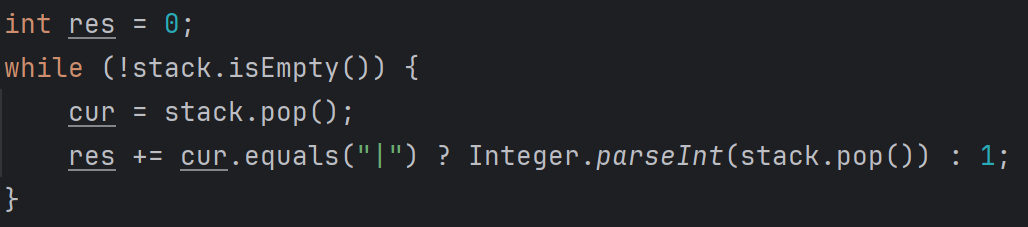 즉, ' | ' 문자 다음으로 pop을 해서 뽑아낸 숫자는, 하나의 문자가 아닌, 숫자의 자릿수이다. 그렇기 때문에 위에서 pop한 문자가 ' | '인 경우에는 다음 수를 뽑아 정수로 변환하고, 그만큼 Q의 길이( lenQ )를 증가시킨 것이다. 주어진 문자열 S에 대해 위의 탐색 과정이 끝났다면, stack에는 하나의 문자 또는 숫자의 자릿수들이 존재한다.
