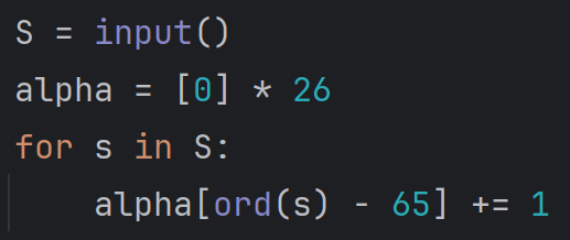 우선 입력받은 문자열의 각 문자 갯수를 세주자.