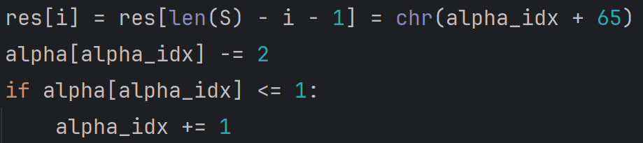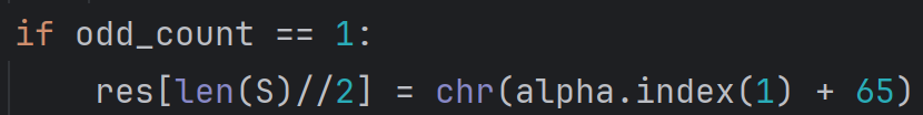 alpha를 다시 탐색하기보다는 odd_count를 통해 남은 문자를 중앙에 삽입해 팰린드롬 문자열을 완성하자