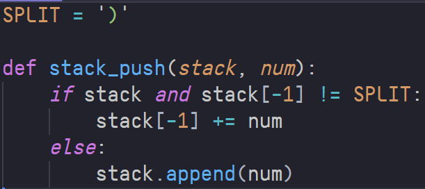 만약 stack의 마지막 요소가 ')'가 아니라면 Q의 길이를 저장하는 방식이므로 주어진 수( num )를 넣거나 더해주자.