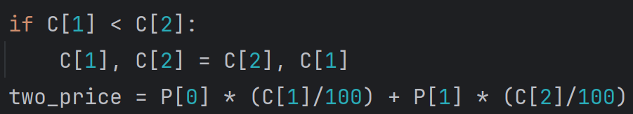C[1], C[2] 또한 DESC순으로 배치해주어 최대 할인율이 적용한 금액을 구하면 된다.