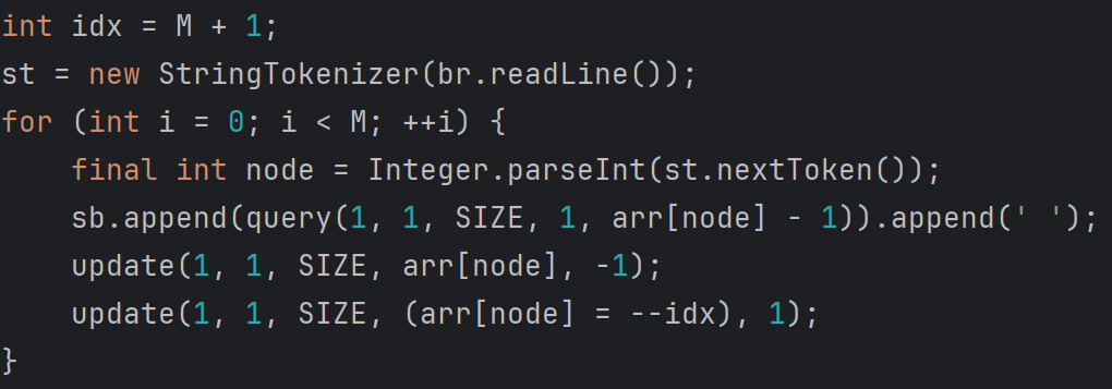 제거한 영화 위에 쌓여있는 영화의 수를 출력해야 하므로, 1 ~ arr[node] - 1의 부분합을 출력하면 된다.