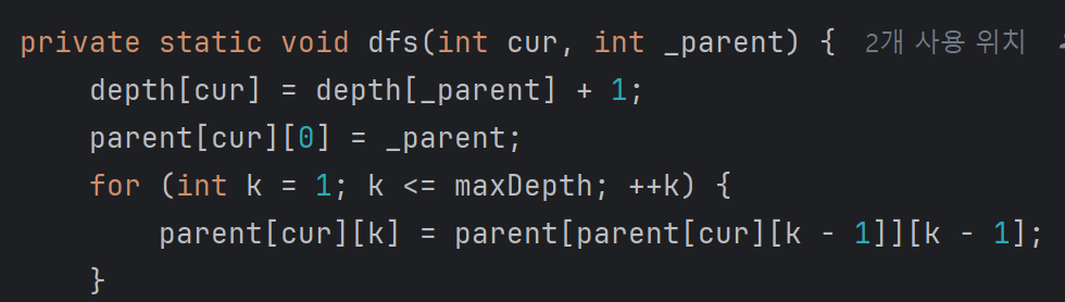 LCA 탐색 과정에서는 기존의 로직을 새로 변형된 parent에 맞춰서 변경해주면 된다.