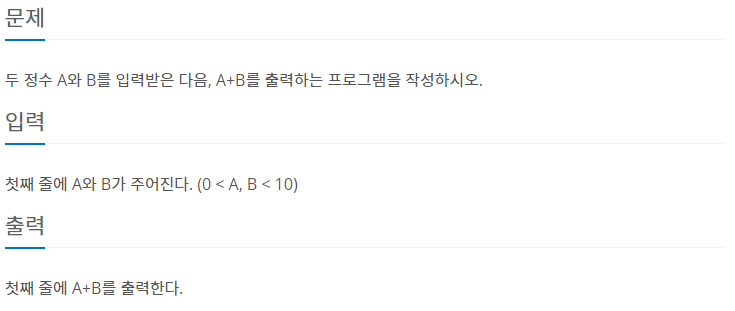 두 정수 A와 B를 입력받은 다음, A+B를 출력하는 프로그램을 작성하시오.