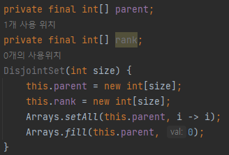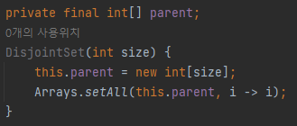 때문에 makeSet 메서드는 대신 아래와 같이 초기화를 진행해주자.