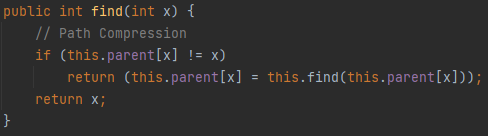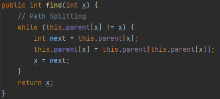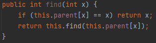 x가 만약 자신이 속한 집합의 대표 원소( parent[x] )일 때 x를 반환하고, 아닌 경우에는 parent[x]에 대해 대표 원소와 동일할 때 까지 탐색을 시도해야 한다.