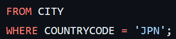 CITY 테이블에서 COUNTRYCODE가 'JPN'인 행의 모든 요소를 출력하면 된다.
